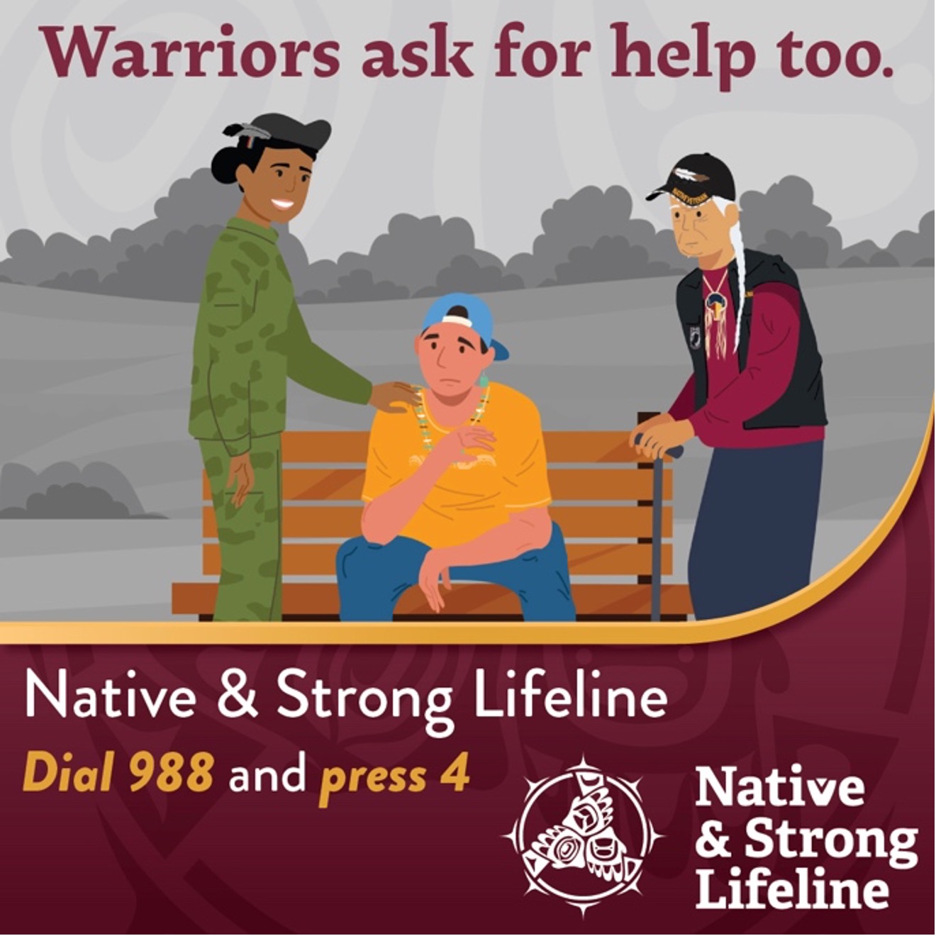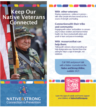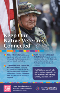 If you’re a Native veteran in crisis or thinking about suicide, dial 988 and press 4 to talk to a Native & Strong Lifeline counselor.